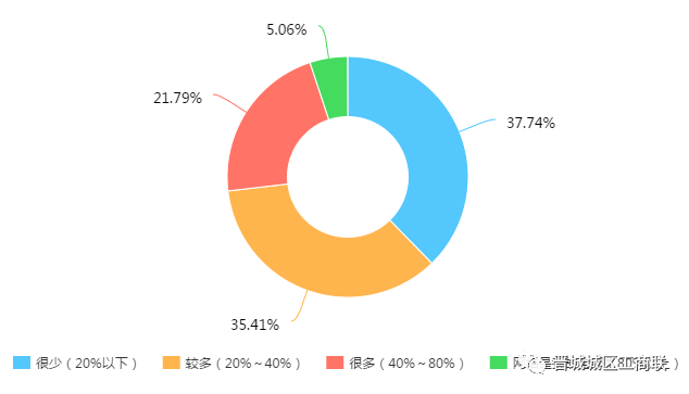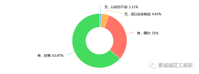 在电子商务还不发达的时期,一个家庭全年维持必要生活的开支基本都集中消费在本地实体零售业中。随着电商崛起,大量消费流向了网络,本地实体零售业销量下降,上缴利税必然随之下降,随之影响当地财政收入;另一方面,实体零售业在拉动就业方面也起着举足轻重作用,如实体零售业萎缩加剧,对本地就业情况也是极大打击。为了解我区范围内网络消费对实体零售业的影响情况,我们调查了晋城市城区居民网络消费在全部消费中的占比。